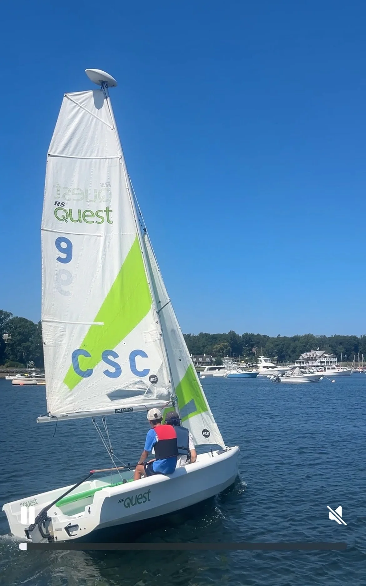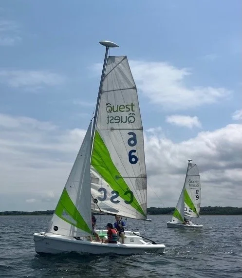 Students may begin enrolling for the summer following 4th Grade and can continue into High School. Our teaching philosophy centers on group sailing, with three to four kids—and sometimes an instructor—learning together in each boat, creating a collaborative and fun experience. Students learn in RS Quests, which are 14’ dinghies with a mainsail and jib. They are about the same length as a 420 used by the racing team, yet with greater stability, width and cockpit space to better accommodate kids and instructors at the same time. Quests are fast becoming to teaching boat of choice for junior programs around the world.