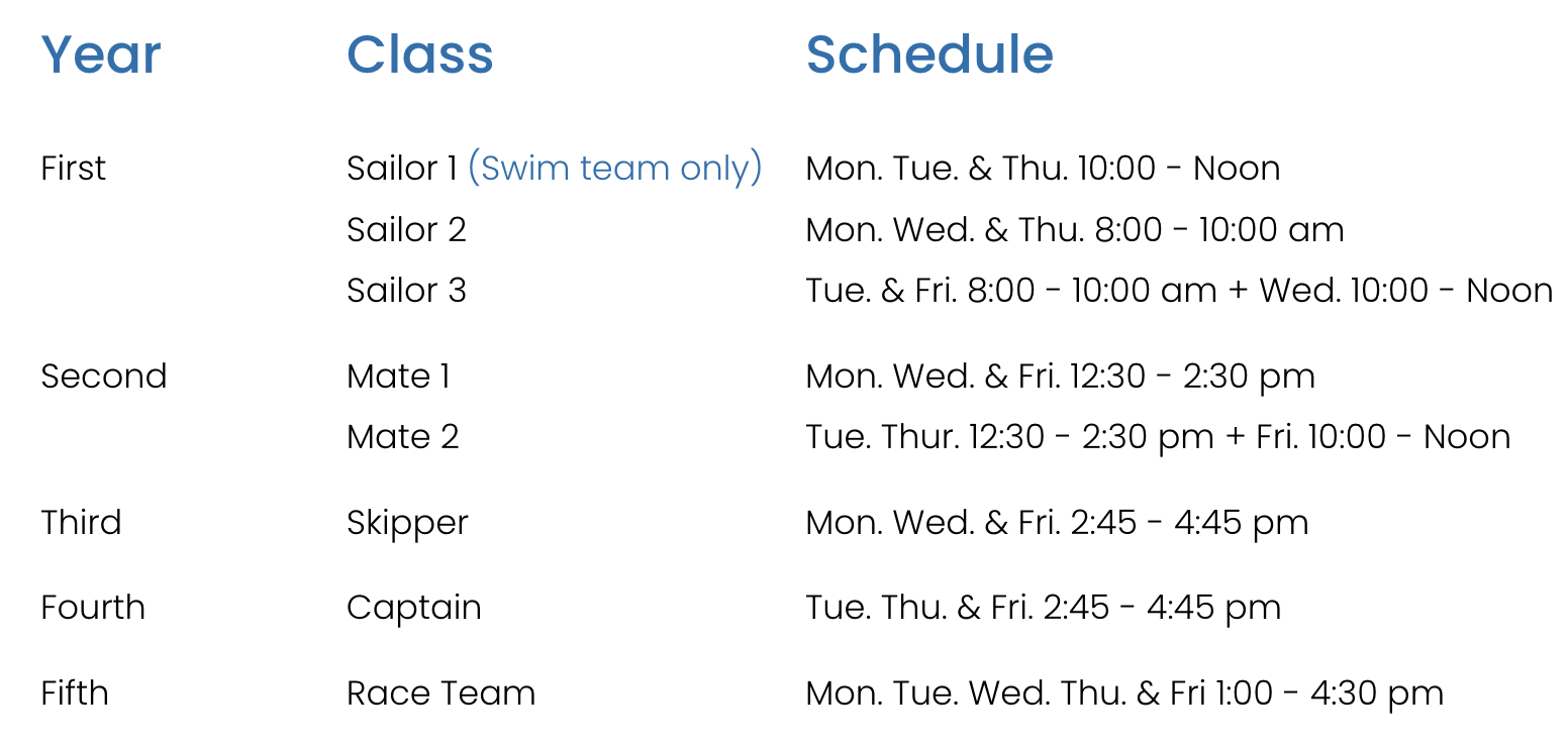 Class options may be viewed from within your account. Registration for junior lessons begins April 1, 2026 and 7:00 pm. Please contact us if you have any questions at info@cohassetsailingclub.org.